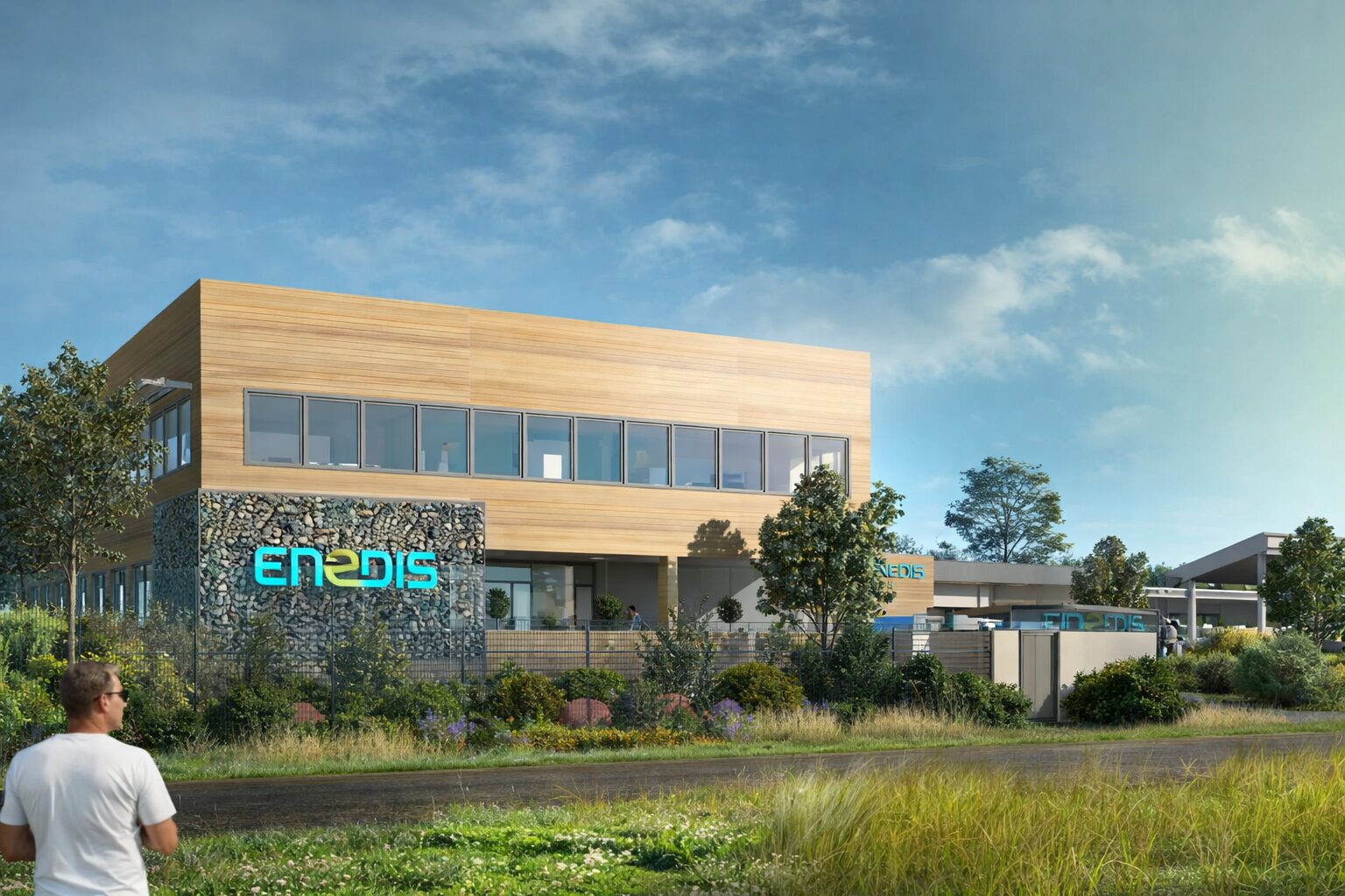 Le projet comprend la construction d’un bâtiment de bureaux en R+1 de 1 142 m² entièrement réalisé en structure bois, ainsi qu’un bâtiment d’activité de 509 m². L’ensemble intègre également un abri véhicules de 213 m² et 32 places de stationnement sous ombrières photovoltaïques. Les matériaux utilisés sont biosourcés, affirmant une démarche de construction durable et performante, respectueuse de l’environnement.
