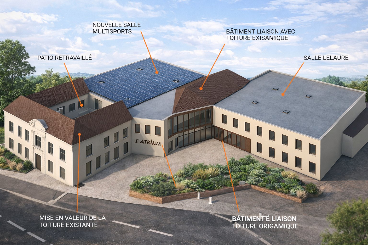 La réhabilitation et l’extension du complexe sportif Lelaure / Atrium visent à créer un équipement sportif labellisé « Équipement sportif d’excellence », grâce à la construction d’un nouveau gymnase assurant la liaison entre la salle Lelaure et l’Atrium. Le projet comprend la rénovation des bâtiments existants, leur mise en accessibilité pour tous les publics et leur intégration à une construction nouvelle, ainsi que la création d’une entrée unique pour l’ensemble du complexe.
